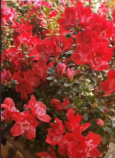 我和老謝騎著摩托在二十一道拐飛掣,拐過第七個山坳時,突然發(fā)現(xiàn)了華鎣山九曲回腸的石階,有種向云端的壯美,于是我倆沿著石階拾級而上。突有猩紅的花影撞入眼簾——那竟是深山幽谷間的一片紅杜鵑,像被山神失手打翻的朱砂盒,將峽谷染成了流動的胭脂河。