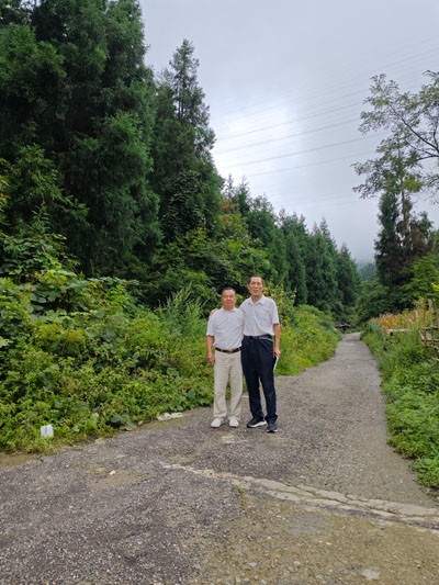 趙忠誠與作者在七里坪山間漫步,暢談人生。