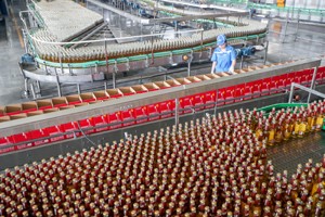 2023年7月13日,華潤雪花啤酒(四川)有限責(zé)任公司廣安分公司的員工,在智能車間生產(chǎn)線上緊張作業(yè)。