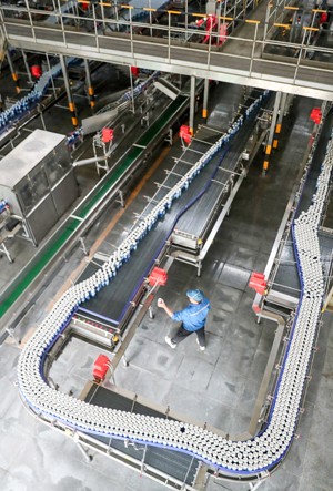 2023年7月13日,華潤雪花啤酒(四川)有限責(zé)任公司廣安分公司的員工,在智能車間包裝線上緊張作業(yè)。(邱海鷹)
