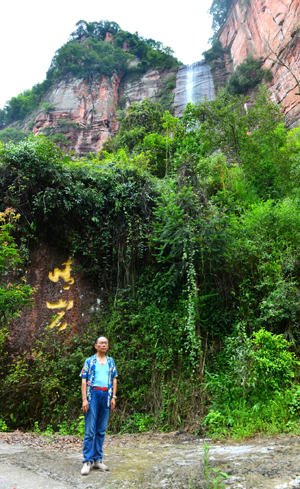 且看靈龜潭中游,玉簾戲水影初漾。隨波蕩向青山外,晨霧暮靄燕回鄉(xiāng)。