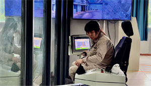 上圖小姐姐一個人通過操作行車就可以把垃圾儲坑內(nèi)的垃圾進(jìn)行投燒,隔了密閉的玻璃,工作室里一點(diǎn)味道都沒有。