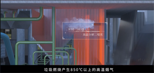 空氣從焚燒爐底部吹入,使垃圾在鍋爐內(nèi)充分燃燒,鍋爐上方亦反向吹入空氣,保證垃圾燃燒充分,提高能量轉(zhuǎn)化率,產(chǎn)生的熱能用于汽輪發(fā)電機(jī)進(jìn)行發(fā)電。