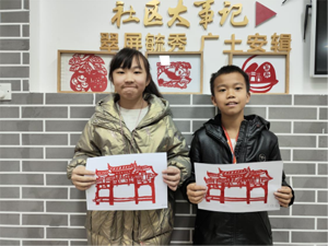 據(jù)了解,剪紙傳承課已持續(xù)開展六期,獲得了轄區(qū)群眾的一致好評(píng)。剪紙工作室自開課以來(lái),王明坤老師帶領(lǐng)社區(qū)兒童們不斷創(chuàng)新,在教學(xué)剪紙技巧的基礎(chǔ)上共同創(chuàng)作了“廣安龍安柚”“翠屏路社區(qū)logo”等具有地方特色的剪紙作品。第六期課程更是融入廣安地標(biāo)之一“萃屏公園”元素,以萃屏公園大門為素材設(shè)計(jì)剪紙作品,以文化作品展現(xiàn)出別樣的社區(qū)風(fēng)采。孩子們的家長(zhǎng)們紛紛表示:“這次活動(dòng)不僅讓孩子們體驗(yàn)到了非遺的魅力,還增強(qiáng)了他們對(duì)家鄉(xiāng)文化的自豪感和認(rèn)同感!”