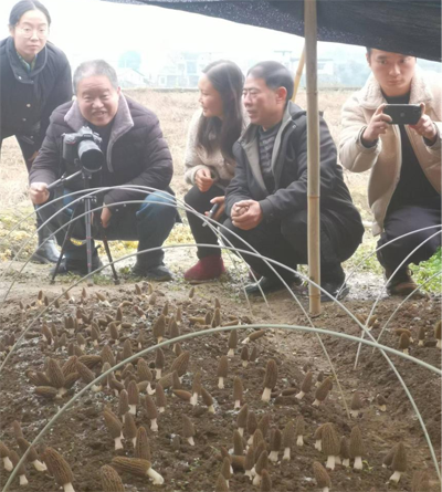 在深入基地大田中,賀新生教授看到成片的羊肚菌,很是高興,對研究生團(tuán)隊(duì)說到:“這個基地我指導(dǎo)了十二年,今年這兩個早菇品種品相好、品質(zhì)優(yōu)、產(chǎn)量高;一個品種畝產(chǎn)量在四百斤以上,以目前市場每斤八十元計算,畝價值在三萬元以上;另一個品種畝產(chǎn)量至少在六百斤以上,畝價值在五萬之上”。