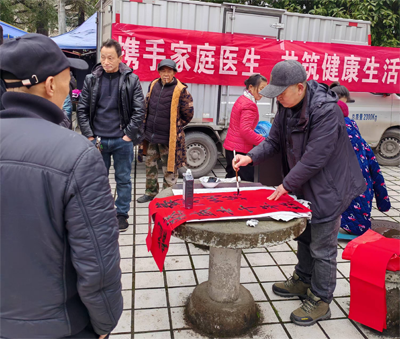在活動中,老科協(xié)會長趙元勛,書畫分會會員侯茂生、熊新華等書法愛好者揮毫潑墨,為父老鄉(xiāng)親現(xiàn)場創(chuàng)作春聯(lián)。大家自己挑選春聯(lián)內(nèi)容,自覺排隊等候,自己看著心儀的春聯(lián)現(xiàn)場誕生,心里樂開了花。