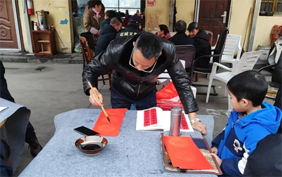 【書畫分會會員熊新華在龍鳳鎮(zhèn)為鄉(xiāng)親創(chuàng)作春聯(lián)】
