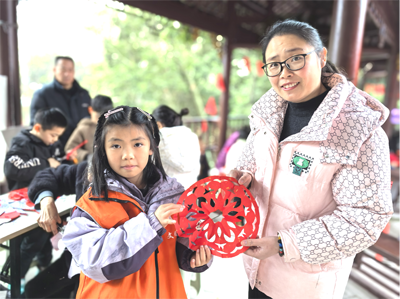 剪紙,不僅是我國(guó)非物質(zhì)文化遺產(chǎn),更是中華民族的文化瑰寶,從吉祥的龍鳳呈祥,到生動(dòng)的花鳥魚蟲,每一幅作品都蘊(yùn)含著深厚的文化內(nèi)涵和美好的祝福。剪紙老師向圍觀群眾細(xì)致講解剪紙方法,老師巧手翻飛,剪刀起落之間,“臘梅迎春”“納福平安”“花開富貴”“蛇年吉祥”“靈蛇獻(xiàn)瑞”,一張張栩栩如生的剪紙作品便呈現(xiàn)在眼前,大家嘖嘖贊嘆,愛不釋手,滿懷喜悅挑選喜歡的作品。圍觀的小朋友在老師指導(dǎo)下,剪出了可愛的蝴蝶、團(tuán)花、燈籠,興奮的向大家展示自己的作品,親身感受到了剪紙這一非物質(zhì)文化遺產(chǎn)的獨(dú)特魅力。
