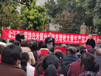 春早人勤。雨水節(jié)氣過后,巴蜀魚米之鄉(xiāng)的白米鎮(zhèn)春播已拉開帷幕。2月24日,合江縣老科協(xié)白米鎮(zhèn)分會(huì)在轉(zhuǎn)龍灣村一農(nóng)家院壩組織開展助農(nóng)增收大春生產(chǎn)技術(shù)培訓(xùn)會(huì)。