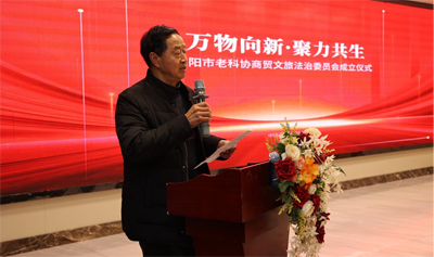 市老科協(xié)原副會長兼文旅法治委員會主任趙樹中發(fā)表講話,對老科協(xié)原文旅法治委員會拓展更名為商貿(mào)文旅法治委員會給予肯定,對新的委員會成立表示祝賀,并賦詩“商貿(mào)文旅本有緣,同生共榮一線牽;絲路蜀道留勝跡,運河峽江存詩篇;今朝攜手開新局,各展其長勇分擔;戮力同心展宏圖,踔厲奮發(fā)再爭先”。對商貿(mào)文旅法治委員會下一步發(fā)展充滿希望。