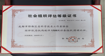 通過不懈努力,于2024年10月下旬,園滿通過第三方評(píng)估機(jī)構(gòu)組織的專家實(shí)地評(píng)估,取得突出成績(jī)。經(jīng)成都市郫都區(qū)社會(huì)組織評(píng)估委員會(huì)審核,確定郫都區(qū)老科學(xué)技術(shù)工作者協(xié)會(huì)為5A級(jí)社會(huì)組織。