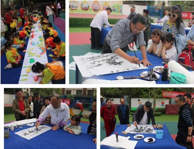 活動中,幼兒園的孩子們拿出七彩畫筆,在長卷上描繪出了一幅幅春光明媚、百花盛開、綠樹成蔭、鳥語花香景象。一幅幅栩栩如生的春天繪畫作品構(gòu)成了三幅長卷,孩子們畫出了自己的心靈感受,描繪出了春天的蓬勃生機,深得家長、老師和參加活動人員的稱贊和喜愛。參加活動的藝術(shù)家興致勃勃,現(xiàn)場潑墨揮毫,創(chuàng)作出風格各異的書畫作品贈送給幼兒園的師生們。他們希望這些作品能在孩子們幼小的心靈里播下藝術(shù)的種子,激發(fā)小朋友的興趣愛好,有益于幼兒性格塑造,在內(nèi)心深處生根發(fā)芽,長成為為參天大樹,將來為祖國建設事業(yè)做出貢獻。