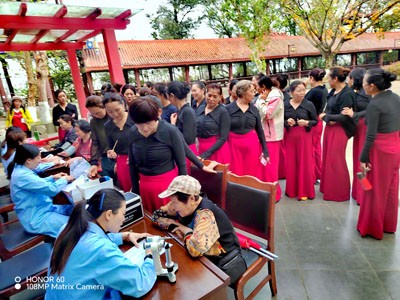 講座結(jié)束后,現(xiàn)場(chǎng)開展了血壓、血糖及白內(nèi)障等健康檢測(cè)活動(dòng)?;顒?dòng)期間,共為73人次檢測(cè)了血糖,為195人次測(cè)量了血壓,為68人次進(jìn)行了白內(nèi)障篩查。醫(yī)護(hù)人員認(rèn)真細(xì)致地操作設(shè)備,耐心解答學(xué)員們的疑問,現(xiàn)場(chǎng)氛圍溫馨而有序。