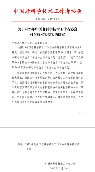 日前,中國老科協(xié)發(fā)出授獎決定,授予10 名同志 2025 年度中國老科學技術工作者協(xié)會科學技術獎“突出獎”、169 名同志和32個組織2025 年度中國老科學技術工作者協(xié)會科學技術獎。合江縣老科協(xié)會長張發(fā)遠榜上有名,位居科學技術獎之列。