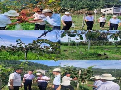8月15日,在粉壁鎮(zhèn)雙燕村葡萄和獼猴桃產(chǎn)業(yè)基地,專家組重點(diǎn)指導(dǎo)了采收后田間管理。對(duì)于葡萄,建議及時(shí)修剪,去除枯枝、病枝,增強(qiáng)通風(fēng)透光;合理施肥,以有機(jī)肥為主,配施少量化肥,補(bǔ)充樹體營(yíng)養(yǎng);清理園內(nèi)枯枝、落葉,集中燒毀,做好病蟲害防治,減少病蟲害滋生。針對(duì)獼猴桃,專家們提醒干旱時(shí)及時(shí)啟動(dòng)噴灌補(bǔ)水,同時(shí)確保排水渠道暢通,避免積水;果實(shí)采摘后,及時(shí)疏除晚秋梢,減少養(yǎng)分消耗。同時(shí),建議業(yè)主要擴(kuò)大林下養(yǎng)殖規(guī)模,養(yǎng)殖雞、鴨、鵝。既可以提高綜合效益,降低除草成本,還可減少病蟲害發(fā)生而提質(zhì)增效。