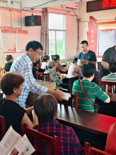 沒有高深術(shù)語,不搞形式主義?!按蠹以诜N、養(yǎng)殖過程中遇到什么問題,盡管提!我們就是來送今天就是來送‘科技禮包’的!”活動一開始,唐定志親切樸實的話語就拉近了與村民的距離。他不僅介紹了老科協(xié)的助農(nóng)使命,更帶來了一份份沉甸甸的“科技禮包”——《渠縣科普報》《食品衛(wèi)生安全手冊》、《健康生活集錦》、肥皂等東西,并與隨行的縣老科協(xié)領(lǐng)導(dǎo)和專家一起,逐一發(fā)放到參會群眾的手中。村民覃國忠捧著資料喜笑顏開:“這些可比網(wǎng)上查的靠譜多了!以后食品安全遇到問題,翻翻書就能找到辦法!”
