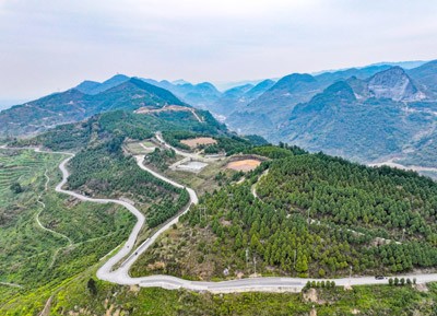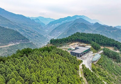 2025年3月11日,鳥瞰四川省華鎣市利用華龍街道柏木山的石漠化土地和荒山荒坡興建的集產(chǎn)品加工、銷售及科研、推廣于一體的油樟綜合利用中心。