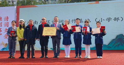 大會內(nèi)容精彩紛呈,有武術、巴烏表演、有經(jīng)典誦讀、有詩詞輪答,在點字成詩、詩詞接龍和飛花令環(huán)節(jié)中,天臺崗各校區(qū)的學生代表隊表現(xiàn)都十分出色,明確看出學生們對傳統(tǒng)詩詞的熱愛,也能感受到傳統(tǒng)詩詞對學生們的成長有著十分重要的意義,這種傳承就是民族文化自信的源泉,所以,本次詩詞大會獲得一等獎的馮子墨、張玉生、陳遇賢、張?zhí)鞜標拿瑢W,也獲得了加入南岸區(qū)作家協(xié)會機會,成為區(qū)作協(xié)最小的會員,指導老師聶雯倩也一同加入作協(xié),這代表著文學可持續(xù)發(fā)展。半川社長和憶卿社長為新晉學生會員頒發(fā)證書與獎狀的同時,楊金幫主席也授牌“重慶市南岸區(qū)詩詞創(chuàng)作基地(小學部)”予徐勇校長。