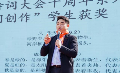 校長徐勇在致辭中介紹,“融創(chuàng)杯”詩詞大會已成功舉辦十屆,彰顯了天臺崗融創(chuàng)小學“融匯傳統(tǒng)、創(chuàng)新未來”的辦學思路,明確了“國學、國術、國藝”為載體,突出了傳統(tǒng)文化辦學特色,讓每一個孩子在中國傳統(tǒng)文化的浸潤下幸福成長,實現(xiàn)學?!霸@特色、創(chuàng)品牌”的發(fā)展總目標。大會以“詩意十年,韻啟未來”為主題,希望與會嘉賓與師生們歡聚一堂,共享中華傳統(tǒng)詩詞之美。