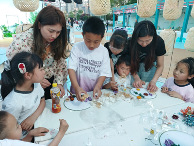 夜幕下的國潮市集人氣火爆,各類特色攤位將傳統(tǒng)文化與現(xiàn)代消費(fèi)巧妙結(jié)合?!爸讣馐斑z”體驗區(qū),年輕人在手工老師指導(dǎo)下制作夏花團(tuán)扇,干花點綴、絲線纏繞,一件件作品盡顯東方美學(xué);“潮玩電競”區(qū)則搭建起古風(fēng)場景與科技感燈光交織的網(wǎng)紅打卡墻,吸引游客爭相拍照。市集還推出前鋒特產(chǎn)展銷,純天然蜂蜜、廣安松針等“前鋒味道”成為搶手貨?!皞鹘y(tǒng)手作和網(wǎng)紅元素結(jié)合,既有情懷又有新意!”游客王女士點贊道。