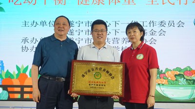 活動伊始,現(xiàn)場氣氛熱烈非凡。在舉辦這次全校師生的共同見證下,舉行了莊重的遂寧市公共營養(yǎng)師協(xié)會副會長單位授牌儀式。遂寧市公共營養(yǎng)師協(xié)會名譽(yù)會長黎硯光、會長周虹為遂州外國語學(xué)校授牌,這不僅是對學(xué)校在營養(yǎng)健康工作方面的認(rèn)可,更為雙方未來在營養(yǎng)科普教育領(lǐng)域的深入合作奠定了堅(jiān)實(shí)基礎(chǔ)。