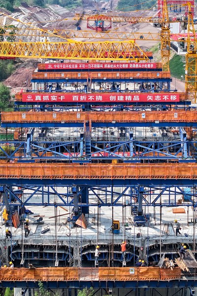 西渝高鐵康渝段站前11標(biāo)的中鐵十局的建設(shè)者在廣安東站四線中橋冒著酷熱緊張施工。(邱海鷹 柏見真/文圖)