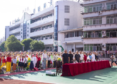 活動(dòng)在莊嚴(yán)的全體師生齊唱國(guó)歌中拉開(kāi)序幕,少先隊(duì)員行隊(duì)禮致敬。隨后,少先隊(duì)員代表?杜紫淇、謝佳怡?獻(xiàn)詞,以真摯的語(yǔ)言表達(dá)對(duì)祖國(guó)、師長(zhǎng)和校園的熱愛(ài)。