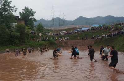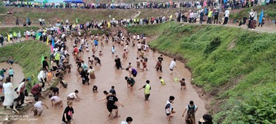 隨后,摸魚大賽也火熱開場(chǎng),大人們挽起褲腿踏入深水區(qū),孩子們則在淺水田里尋找嬉戲,體驗(yàn)渾水摸魚樂趣的同時(shí),爭(zhēng)相比拼誰(shuí)抓的魚更多更大,水田里不時(shí)傳來(lái)收獲的喜悅。泥塘抓鴨摸魚,千人樂享農(nóng)耕歡樂時(shí)光。