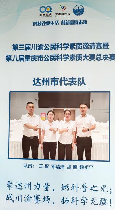 榮譽的背后,是堅實的組織保障和持續(xù)的科普投入。達州市科協(xié)高度重視公民科學素質建設,早在9月2日,便于市工人文化宮“五一劇場”隆重舉辦第三屆達州市公民科學素質大賽。黨組書記、主席唐灼現(xiàn)場致辭,經過來自開江、萬源、渠縣等10支代表隊50名選手激烈角逐,最終選拔出魏祖平、鄧清清、胡楠、王智四位優(yōu)秀選手,組成達州市代表隊,并凝練出“聚達州力量,燃科普之光;戰(zhàn)川渝賽場,拓科學無疆!”的響亮口號,由市科協(xié)黨組成員、副主席岳希富親自帶隊赴渝參賽。