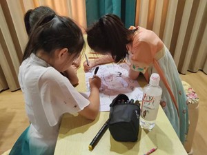 活動開始,九江街道萬家社區(qū)關(guān)工委志愿者老師為孩子們分發(fā)的空白素描紙、鉛筆、橡皮擦、彩筆等繪畫用品。志愿者老師給孩子們講了繪畫的一些基礎(chǔ)知識,要孩子們按照要求,發(fā)揮自己的想象開始了繪畫創(chuàng)作。孩子們經(jīng)過認(rèn)真思考過后,用畫筆勾畫出各式各樣的作品圖案線條,展示著孩子們對于事物的仔細(xì)觀察與理解,在搭配上各自喜歡的顏色,使自己的美術(shù)作品更加形象直觀。每一幅畫都體現(xiàn)了每個孩子對于美追求和理解的展示。盡管有些孩子對于線條的處理并不完善,但是他們畫仍然是那么美。