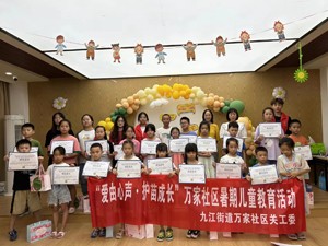 接著萬家社區(qū)干部唐潔對萬家社區(qū)關工委舉行的為期一個月的“愛由心聲·‘護苗’成長”夏令營活所取得的成績表示肯,對為小朋友們無私奉獻的7位大學生志愿者老師表示感謝。希望小朋友們繼續(xù)認真學習,成就更好的自己。