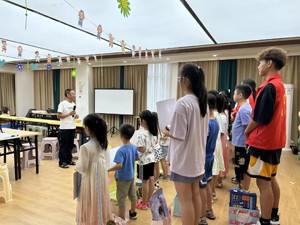 夏令營結營儀式首先由志愿者譚明姣老師回顧一個月的教學活動。她說,在為期一個月的時間里,他們?yōu)楹⒆觽冮_展了課業(yè)輔導22次,創(chuàng)意手工四次,童創(chuàng)美術4次,傳統(tǒng)文化體驗4次,廚趣體驗4次,運動賽事4次。在這一個月里,小朋友們收獲滿滿,既收獲了各種文化知識,又收獲了溫暖的同學情誼。