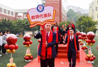 教師方陣步履鏗鏘,衣袂卷起知識的星火。