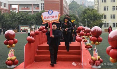 晨光初綻,初三師生踏著激昂的鼓點(diǎn),從“奮斗門”出發(fā),踏過象征智慧積淀的“狀元橋”,邁向滿載期許的“成功臺”。
