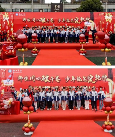 “筆鋒所指,題海皆破;信念為帆,征途必達(dá)!攜手搏此一役,共譜城西華章!” 誓言掠過狀元橋的雕欄,漫過成功臺的階梯,最終化作天際的驚雷,為這場青春的戰(zhàn)役,寫下注腳。