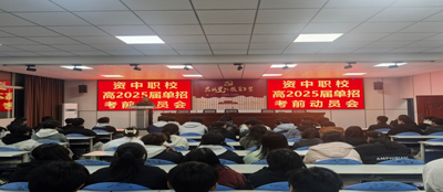 2025年3月20日,資中職校在學(xué)校召開了2025年高職單招考前動(dòng)員會(huì),學(xué)校校級(jí)領(lǐng)導(dǎo)、高職單招領(lǐng)隊(duì)、高三單招學(xué)生參加了本次會(huì)議。會(huì)議由教科室主持,分領(lǐng)隊(duì)會(huì)和學(xué)生會(huì)兩部分。