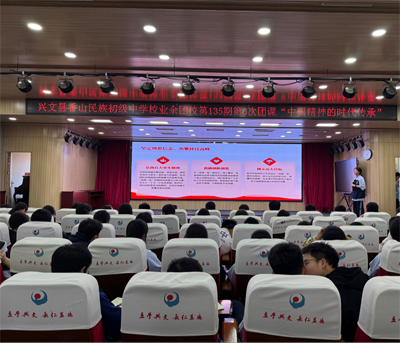 為培養(yǎng)學(xué)生的愛國(guó)情懷,興文縣香山民族初級(jí)中學(xué)校申玉菡同學(xué)為團(tuán)員們和入團(tuán)積極分子們帶來了一堂以“中國(guó)精神的時(shí)代傳承—兩彈一星精神”為主題的精彩團(tuán)課。