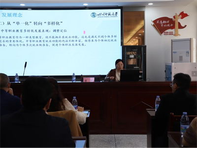4月9日,四川師范大學(xué)碩士生導(dǎo)師、成都市職業(yè)技術(shù)教育學(xué)會秘書曾歡教授作《新時代中職高質(zhì)量發(fā)展的給予、挑戰(zhàn)與突破》專題講座;該教授圍繞把握新時代職業(yè)教育高質(zhì)量發(fā)展的路徑與策略、聚焦項目,激發(fā)活力,系統(tǒng)推進高質(zhì)量發(fā)展兩個方面講述如何推動學(xué)校內(nèi)涵建設(shè),實現(xiàn)職業(yè)教育的高質(zhì)量發(fā)展,提出要在黨建引領(lǐng)和思想政治工作、長遠發(fā)展和高質(zhì)量發(fā)展、高水平人才培養(yǎng)和高水平專業(yè)建設(shè)、師資隊伍建設(shè)、提升治理體系和治理能力六個方向上下功夫,要以績效考核賦能,充分激發(fā)干事創(chuàng)業(yè)內(nèi)生動力、打造“工匠之師”,暢通所有教師向上發(fā)展通道、深化產(chǎn)教融合,提高專業(yè)發(fā)展的能力三個重點舉措,從而實現(xiàn)學(xué)校的高質(zhì)量發(fā)展?! ?/p>