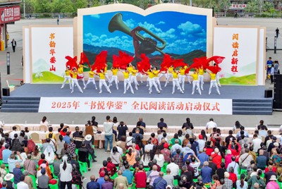 2025年4月17日,市民在四川省華鎣市舉行的“川渝共建·閱享書香”2025年“書悅?cè)A鎣”全民閱讀活動(dòng)啟動(dòng)儀式上表演相關(guān)文藝節(jié)目。
