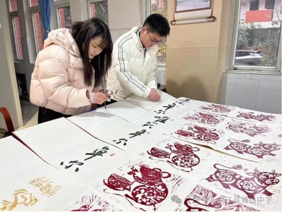 馮天驕老師指導(dǎo)同學(xué)們完成十二生肖拓印。