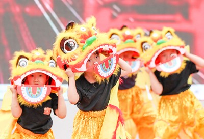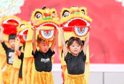 2025年5月28日,四川省華鎣市五星幼兒園的小朋友在表演舞獅,感受傳統(tǒng)文化的魅力,在開心中迎接端午佳節(jié)和六一兒童節(jié)。