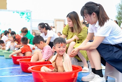 2025年5月28日,四川省華鎣市五星幼兒園的小朋友在沐浴寓意能避災驅(qū)邪的艾葉水澡,感受傳統(tǒng)文化的魅力,在開心中迎接端午佳節(jié)和六一兒童節(jié)。