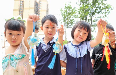 2025年5月28日,四川省華鎣市五星幼兒園的小朋友在開心中展示自己制作的香包,感受傳統(tǒng)文化的魅力,在開心中迎接端午佳節(jié)和六一兒童節(jié)。(邱海鷹/攝影報道)