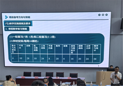 四川省宣漢職業(yè)中專學(xué)校教研組長劉聯(lián)劍,從職業(yè)教育發(fā)展新形勢講到新課標(biāo)對高考的影響,最后講到精準(zhǔn)備考方向與策略,內(nèi)容很詳實(shí)并且具有可參考性和操作性,尤其是在精準(zhǔn)備考方向與策略部分,將職高和普高的六大核心素養(yǎng)進(jìn)行了對比,指出兩類學(xué)段的數(shù)學(xué)學(xué)科核心素養(yǎng)是一樣,但是基于學(xué)習(xí)對象的能力水平不同,這六大素養(yǎng)在各自的課程標(biāo)準(zhǔn)里的描述以及對學(xué)生通過數(shù)學(xué)課程學(xué)習(xí)后形成素養(yǎng)的要求是有區(qū)別的。同時,這六大素養(yǎng)在各自的課程里呈現(xiàn)的先后的順序是有差異的,意味著對素養(yǎng)要求的側(cè)重點(diǎn)不同。并且著重對高三教學(xué)實(shí)施、措施及要求進(jìn)行了闡述,對于實(shí)際的教學(xué)有著很高的指導(dǎo)價值。