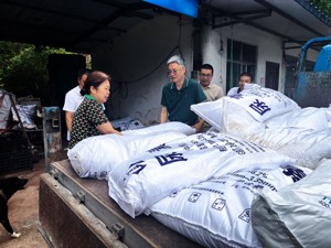 早上8點(diǎn),該公司負(fù)責(zé)人劉劍就已經(jīng)運(yùn)輸尿素到達(dá)了新橋鎮(zhèn),大家齊心協(xié)力將這1噸愛(ài)心肥料搬至該合作社管理人祝常康的院壩棚內(nèi)。雖然大家都上了年紀(jì),但是做起愛(ài)心事業(yè),大家都精力充沛、毫不含糊。