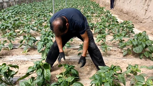 “6月份初,公司派了技術(shù)人員過來取土拿回去檢測。檢測結(jié)果顯示我們這里土壤偏堿性,有輕微鹽化,所以我針對性制定了管理方案。讓彩椒在最適宜的環(huán)境中生長,目前我們已經(jīng)完成辣椒苗定植,吊秧,施肥、澆水等工作。后續(xù)我們還要觀察辣椒的長勢,隨時(shí)調(diào)整方案,保證彩椒的口感、營養(yǎng)成分。同時(shí),我會按照無公害要求來種植生產(chǎn)蔬菜,爭取在10月底有一個(gè)好的收成?!眲⒗蠋熣f。