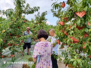 過(guò)去我們學(xué)的桃子品種里的黃桃是做罐頭的,不知道還有可以食用的。我把我的疑問(wèn)提出,陳師弟接話說(shuō):做罐頭的黃桃是酸的。這個(gè)桃子是甜的,純甜的,糖度很高。