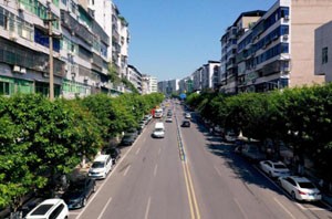 9月6日,拍攝的提質(zhì)改造完成的四川省廣安市廣安區(qū)老城區(qū)洪州大道。