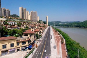 9月6日,拍攝的剛剛改造完成8月30日通車的四川省廣安市廣安區(qū)老城區(qū)濱江路延伸段道路。
