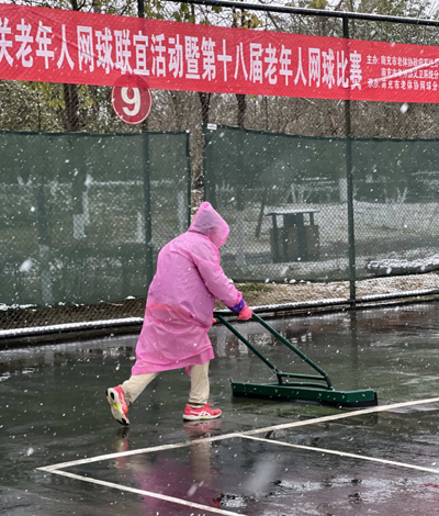 此次慰問(wèn)背后,是謝淑蓉多年如一日對(duì)網(wǎng)球場(chǎng)的無(wú)私奉獻(xiàn)。67 歲的謝淑蓉退休已20多年,家中還有生活不能完全自理的兒子。作為網(wǎng)球分會(huì)會(huì)員,她每日最早抵達(dá)球場(chǎng),不是拿起掃把掃地,就是用推水器推水,一年360天從不間斷。即便是下雨天,面對(duì)領(lǐng)導(dǎo)和球友的勸阻,她仍堅(jiān)持清理球場(chǎng),認(rèn)為此時(shí)更能有效推走球場(chǎng)上的泥沙。2023年1月15日南充下大雪,她冒雪清掃完六片網(wǎng)球場(chǎng)才肯回家。